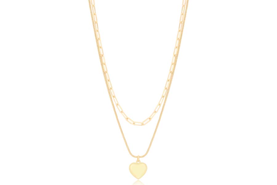 GARGANTILHA BANHADA EM OURO, PINGENTE MÃE, CORAÇÃO 11mm LARGURA, PÉROLAS BARROCAS 5mm LARGURA, 45cm COMPRIMENTO, EXTENSOR 5cm
