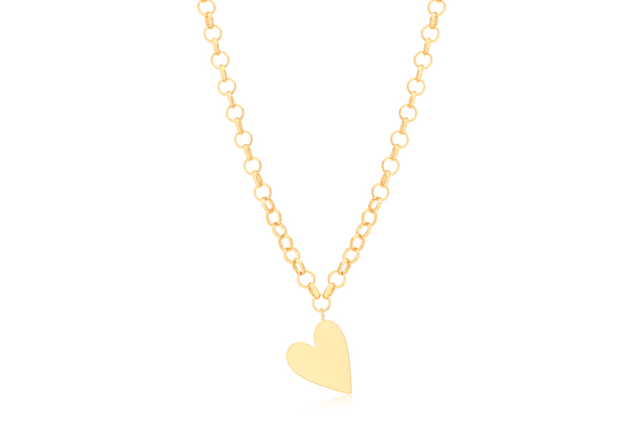 GARGANTILHA BANHADA EM OURO, PINGENTE MÃE, CORAÇÃO 11mm LARGURA, PÉROLAS BARROCAS 5mm LARGURA, 45cm COMPRIMENTO, EXTENSOR 5cm