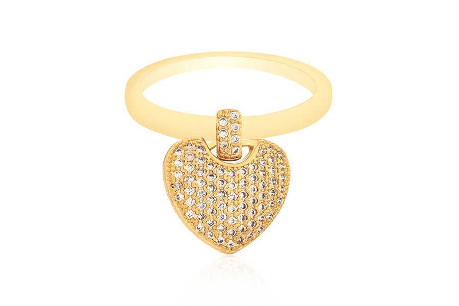 ANEL EM PRATA, BATIMENTO CARDÍACO CRAVEJADO, 17mm LARGURA