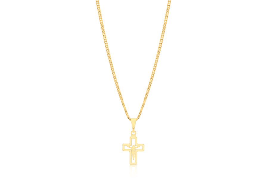 GARGANTILHA BANHADA EM OURO, NOSSA SENHORA APARECIDA 14mm LARGURA, PÉROLAS 4mm, ELO CARTIER 1,40mm LARGURA, 45cm COMPRIMENTO