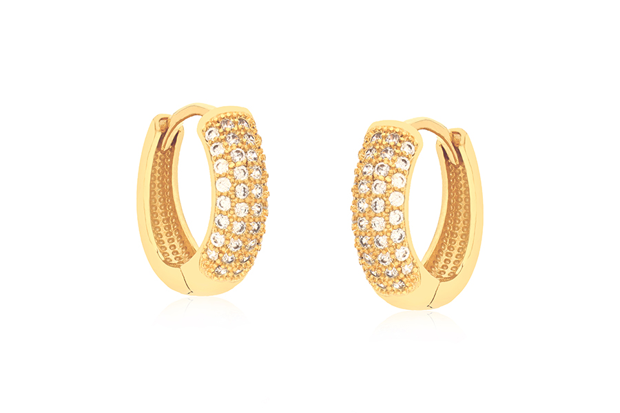 BRINCO BANHADO EM OURO, CORAÇÃO 11mm LARGURA COM 40 ZIRCÔNIAS