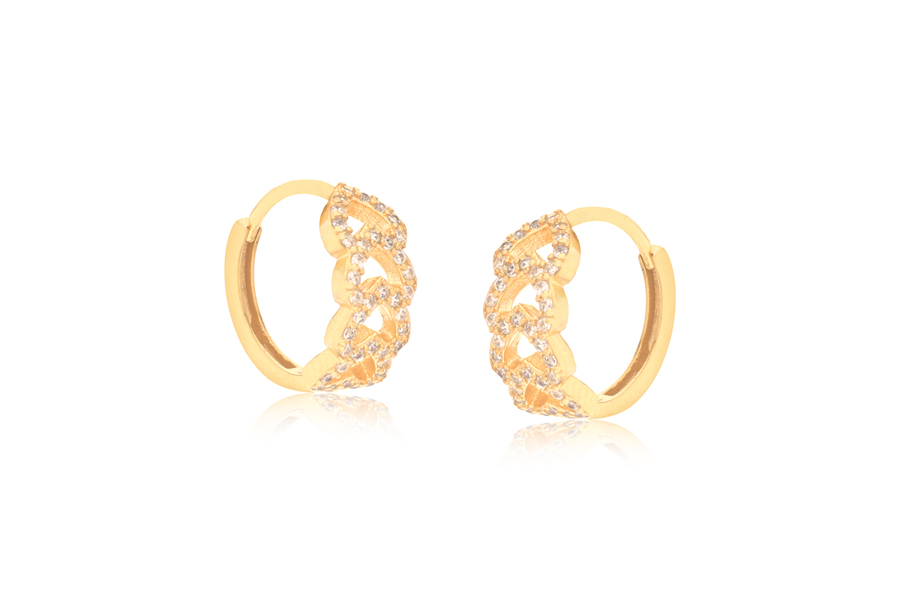 BRINCO BANHADO EM OURO, CORAÇÃO 11mm LARGURA COM 40 ZIRCÔNIAS