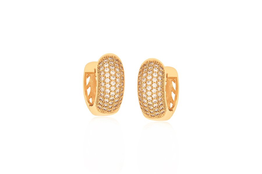 BRINCO BANHADO EM OURO, CORAÇÃO 11mm LARGURA COM 40 ZIRCÔNIAS