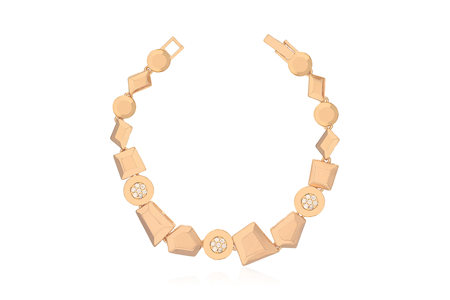 PULSEIRA BANHADA EM OURO, ELOS COM VÁRIOS FORMATOS, 18cm COMPRIMENTO, LINHA OUSE