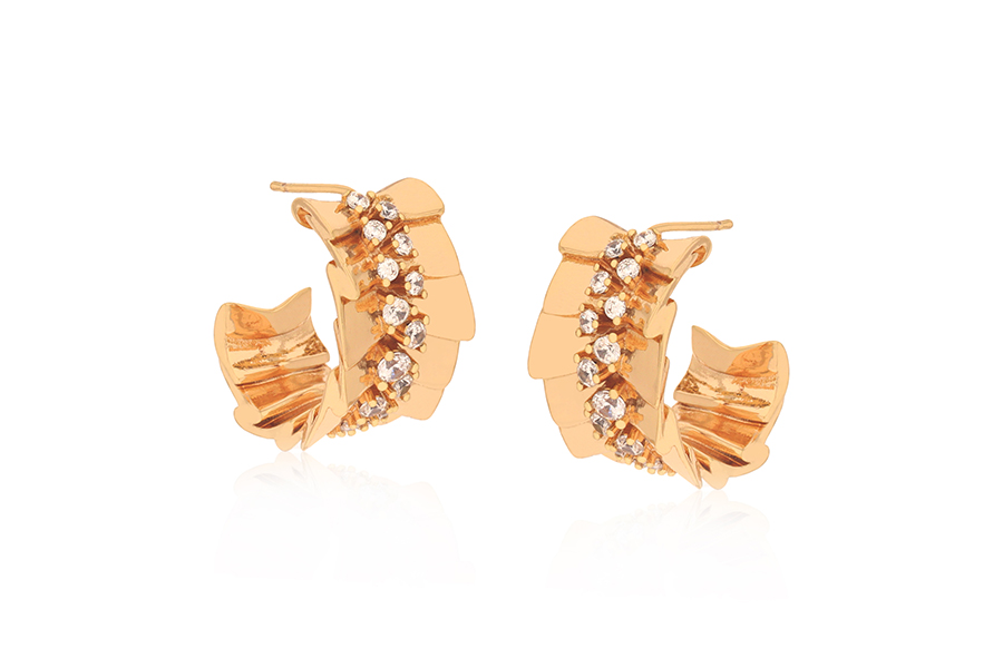 BRINCO BANHADO EM OURO, CORAÇÃO 11mm LARGURA COM 40 ZIRCÔNIAS