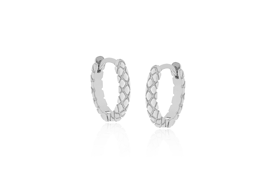 BRINCO EM PRATA, REDONDO 9mm DIÂMETRO, COM BANHO DE RÓDIO BRANCO, COLEÇÃO AURA