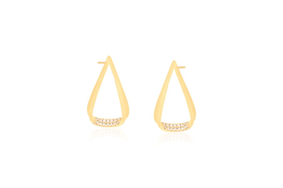 BRINCO BANHADO EM OURO, CORAÇÃO 11mm LARGURA COM 40 ZIRCÔNIAS