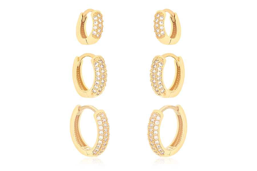 BRINCO BANHADO EM OURO, CORAÇÃO 11mm LARGURA COM 40 ZIRCÔNIAS