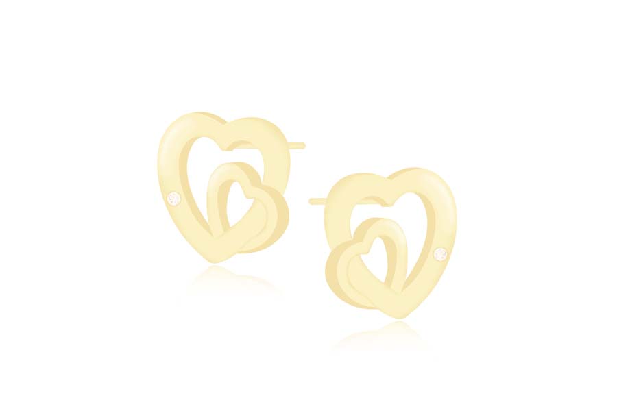 BRINCO BANHADO EM OURO, DOIS CORAÇÕES 8mm ALTURA