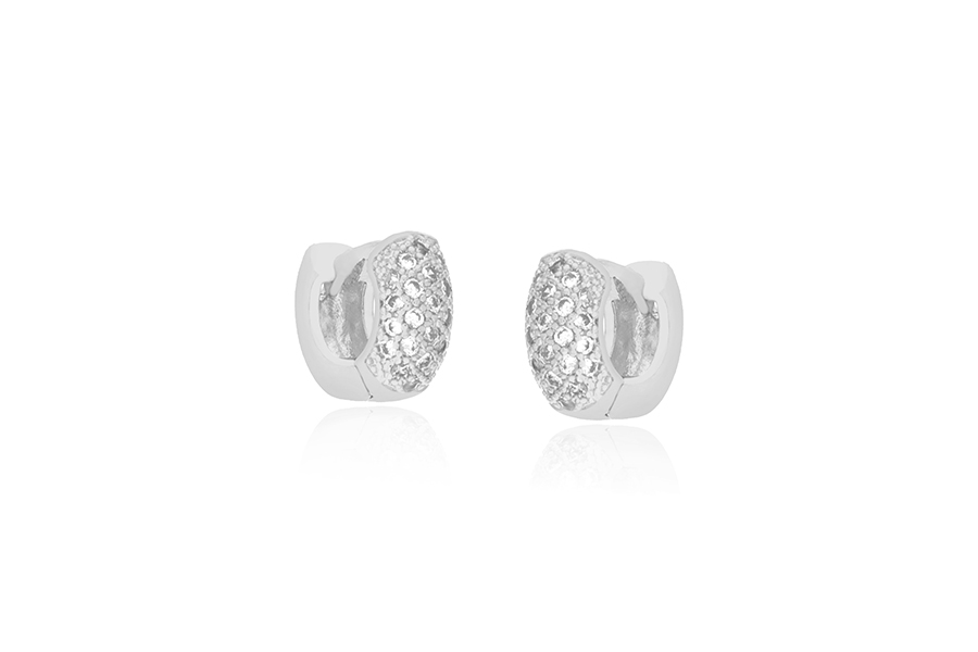 BRINCO BANHADO EM RÓDIO BRANCO, PONTO DE LUZ 4mm, CRAVAÇÃO INGLESA