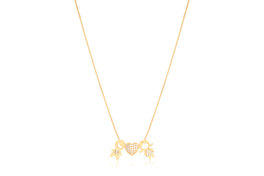 GARGANTILHA BANHADA EM OURO, PINGENTE MÃE, CORAÇÃO 11mm LARGURA, PÉROLAS BARROCAS 5mm LARGURA, 45cm COMPRIMENTO, EXTENSOR 5cm