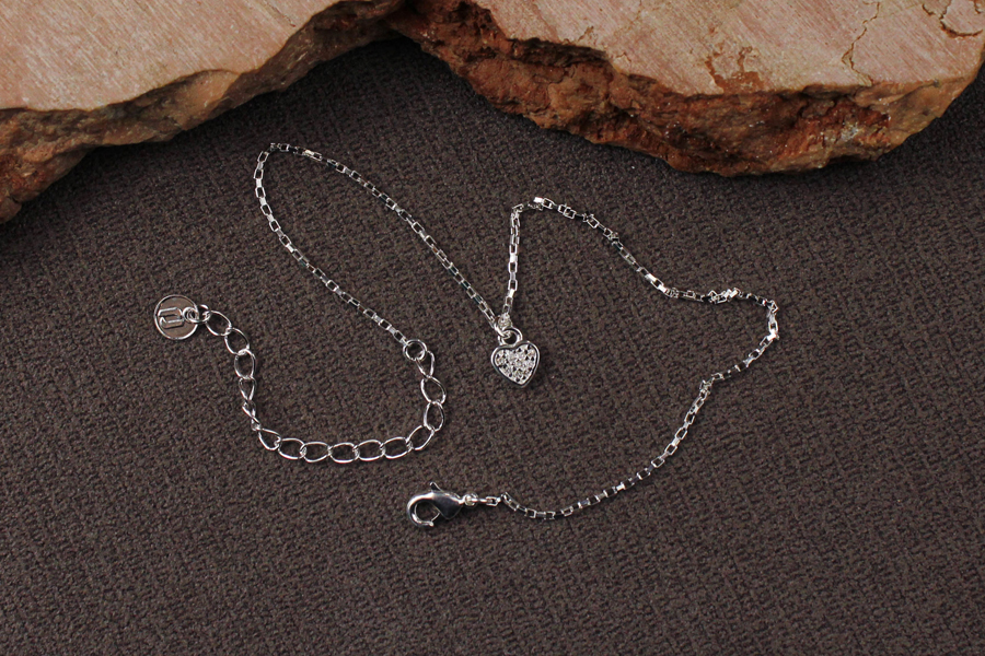 TORNOZELEIRA BANHADA EM PRATA LEVE, ELO VENEZIANA 1,20mm ESPESSURA E CORAÇÃO 6,50mm LARGURA
