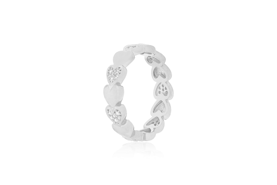 ANEL EM PRATA, BATIMENTO CARDÍACO CRAVEJADO, 17mm LARGURA
