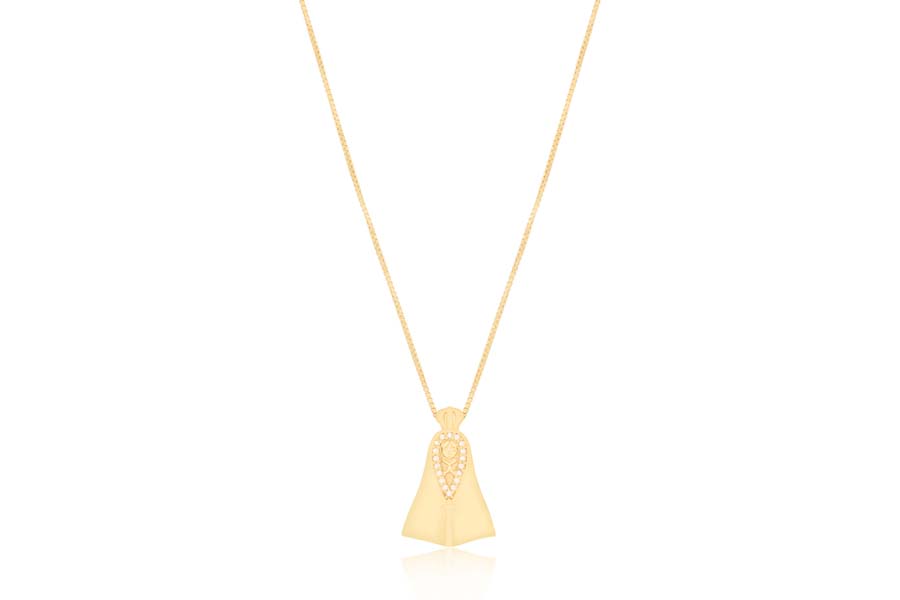 GARGANTILHA BANHADA EM OURO, NOSSA SENHORA APARECIDA 14mm LARGURA, PÉROLAS 4mm, ELO CARTIER 1,40mm LARGURA, 45cm COMPRIMENTO