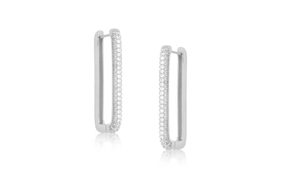 BRINCO BANHADO EM PRATA LEVE, ARGOLINHA RETANGULAR 11x8mm