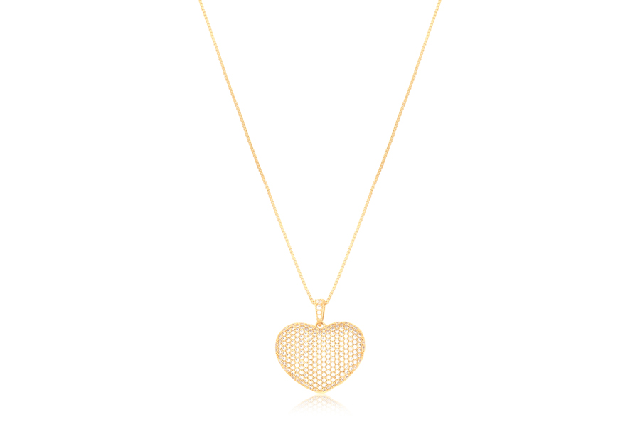 GARGANTILHA BANHADA EM OURO, PINGENTE MÃE, CORAÇÃO 11mm LARGURA, PÉROLAS BARROCAS 5mm LARGURA, 45cm COMPRIMENTO, EXTENSOR 5cm
