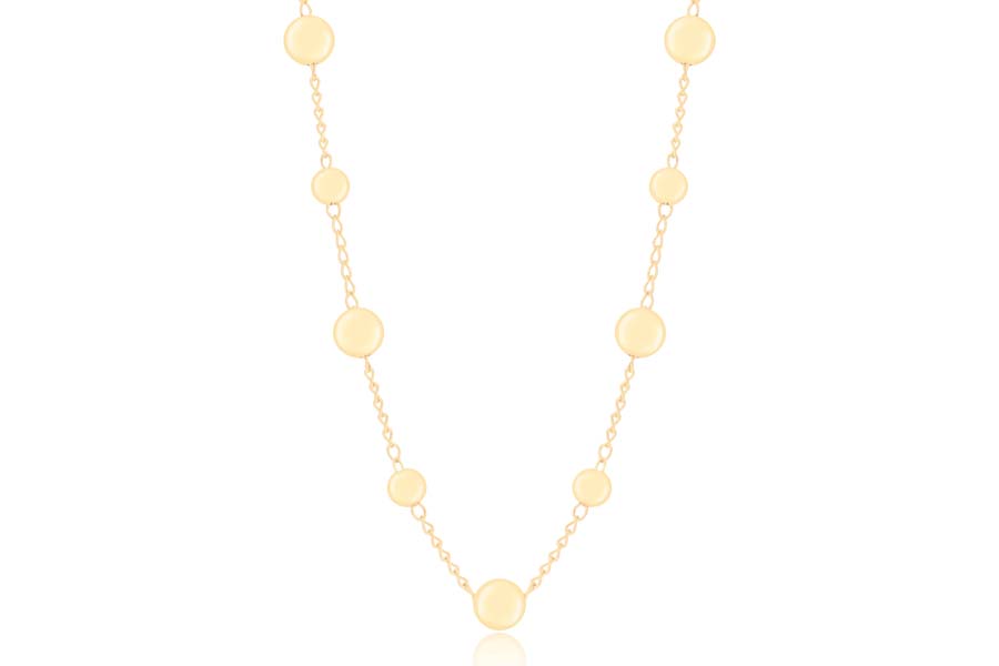 GARGANTILHA EM PRATA, ELO VENEZIANA 0,60mm, 40cm COMPRIMENTO, EXTENSOR 5cm, PINGENTE REDONDO 9mm DIÂMETRO, COM BANHO DE RÓDIO BRANCO, COLEÇÃO AURA