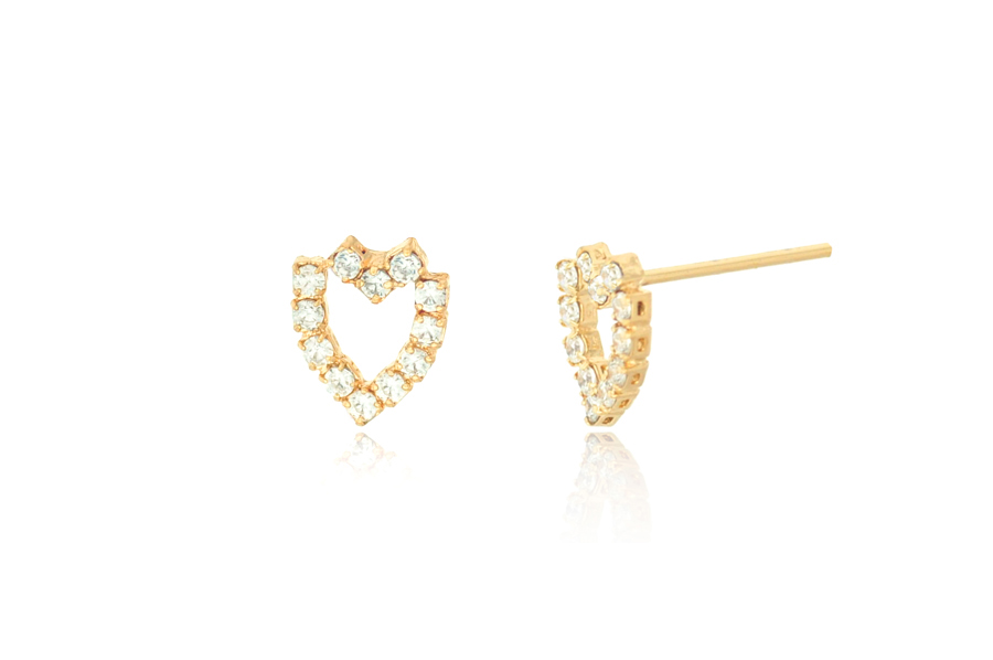 BRINCO BANHADO EM OURO, CORAÇÃO ZIRCÔNIA 6X6mm, PARA QUALQUER COR DE PEDRA