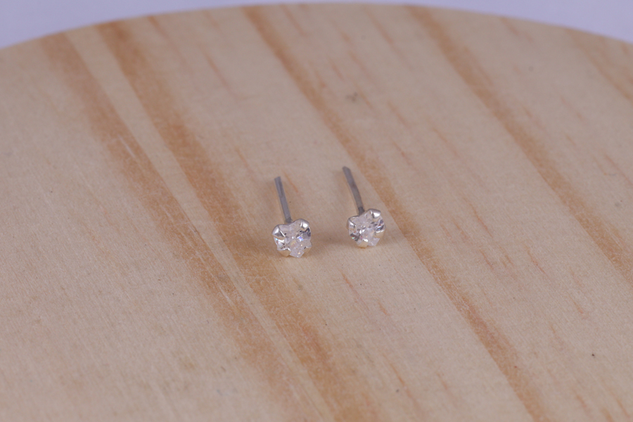 BRINCO BANHADO EM RÓDIO BRANCO, PONTO DE LUZ 4mm, CRAVAÇÃO INGLESA