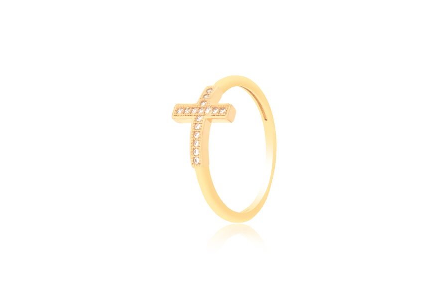 ANEL BANHADO EM OURO, FLOR TRABALHADA 22,40mm LARGURA