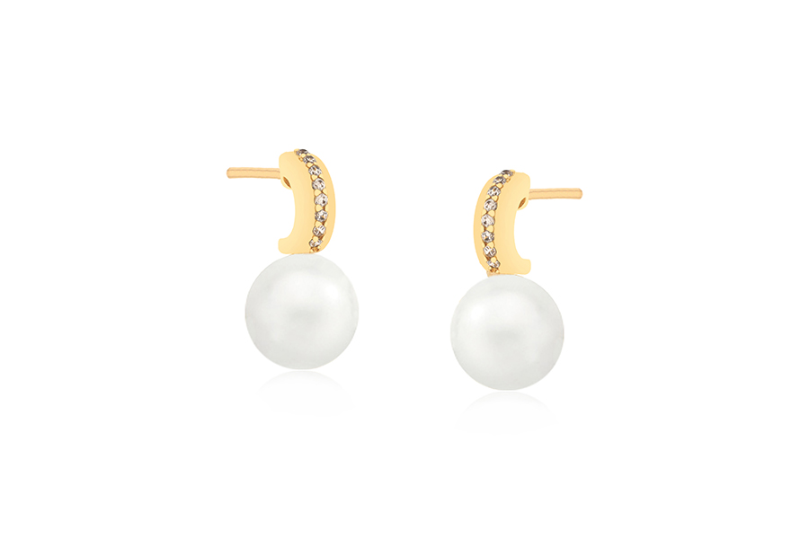 BRINCO BANHADO EM OURO, PÉROLA SHELL 10mm, LINHA TRADICIONAL