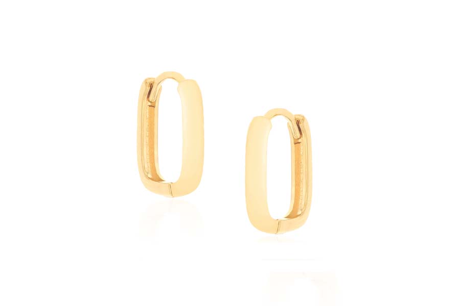 BRINCO BANHADO EM PRATA LEVE, ARGOLINHA RETANGULAR 11x8mm