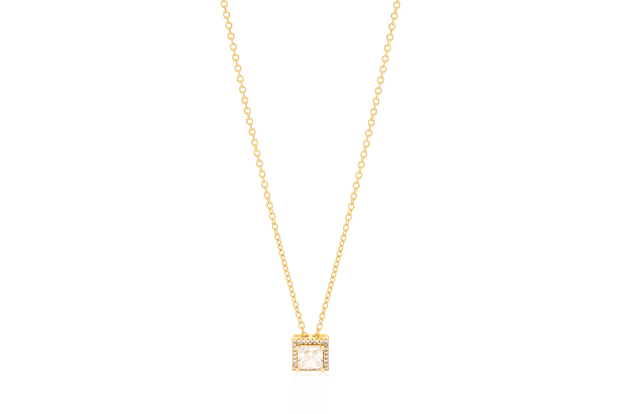 GARGANTILHA BANHADA EM OURO, ELO 2mm, 40cm COMPRIMENTO COM ZIRCÔNIAS QUADRADA 8 E 6mm COLORIDAS