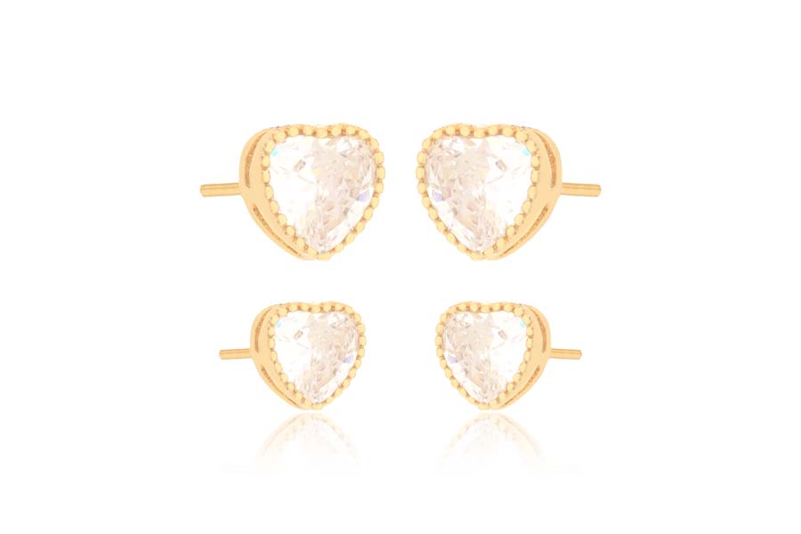 BRINCO BANHADO EM OURO, CORAÇÃO ZIRCÔNIA 6X6mm, PARA QUALQUER COR DE PEDRA