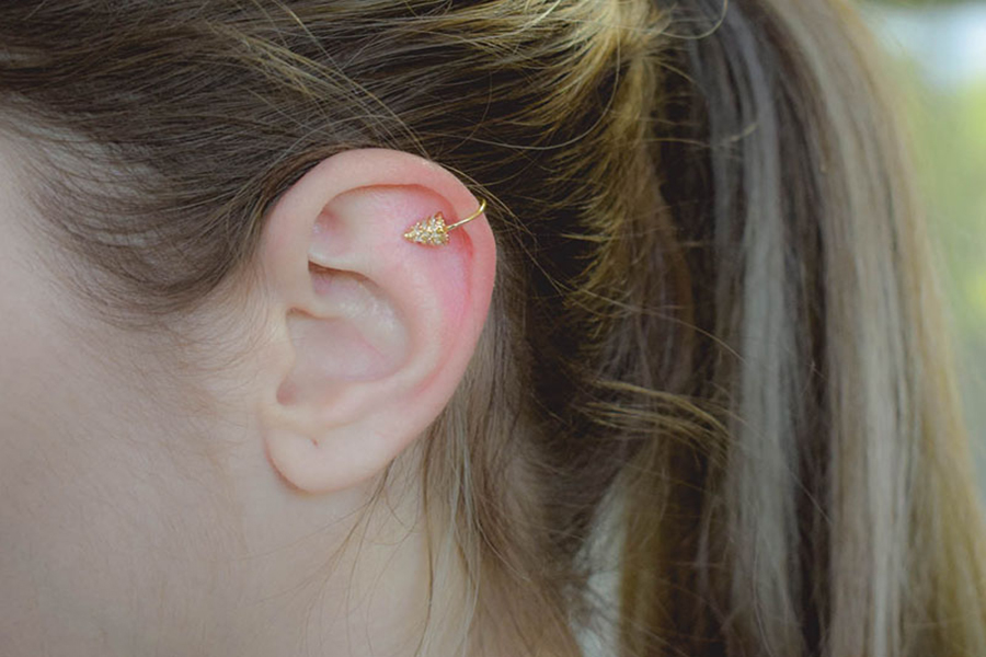 PINGENTE BANHADO EM OURO PIERCING DE ORELHA, CORAÇÃO 7,30mm