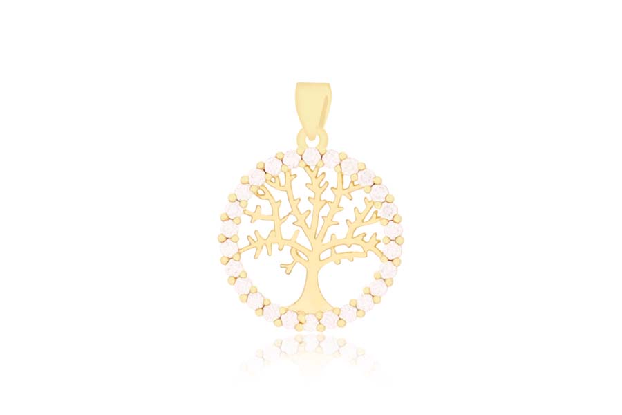 PINGENTE BANHADA EM OURO, ÁRVORE DA VIDA 17mm DIÂMETRO
