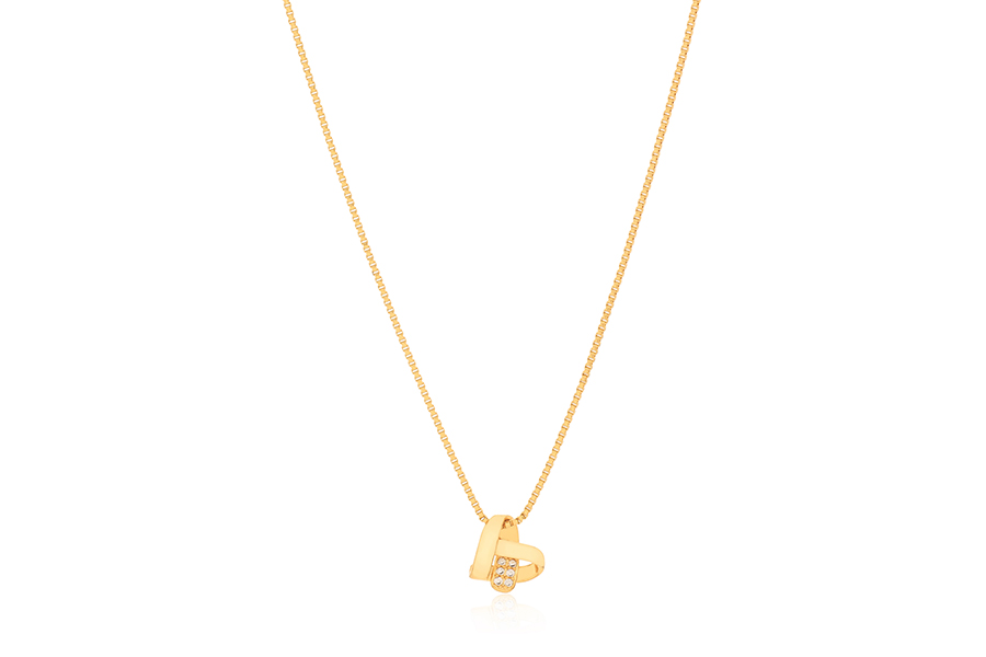 GARGANTILHA BANHADA EM OURO, PINGENTE MÃE, CORAÇÃO 11mm LARGURA, PÉROLAS BARROCAS 5mm LARGURA, 45cm COMPRIMENTO, EXTENSOR 5cm
