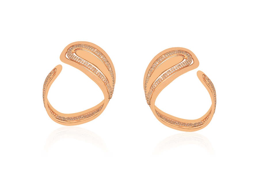 BRINCO BANHADO EM OURO, CORAÇÃO 11mm LARGURA COM 40 ZIRCÔNIAS
