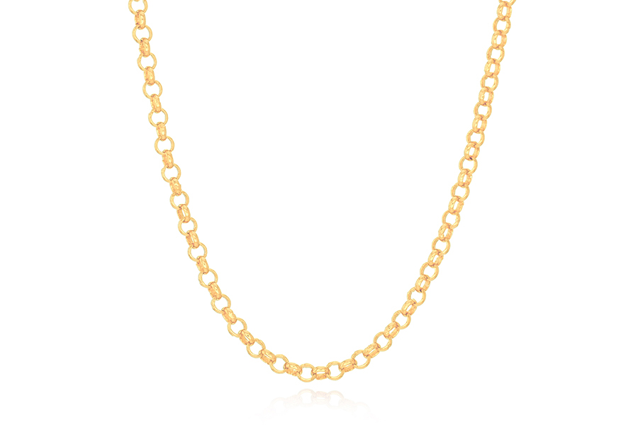 CORRENTE BANHADA EM OURO, ELO PORTUGUÊS 2,50mm, 40cm COMPRIMENTO, EXTENSOR 5cm COMPRIMENTO E PESO 3,40g