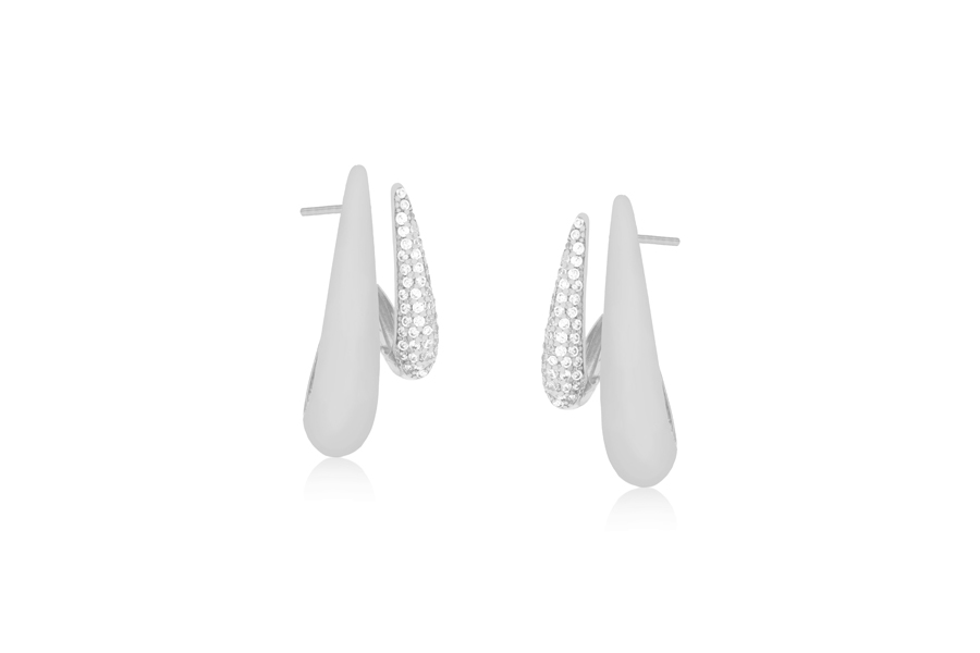 BRINCO EM PRATA, PONTO DE LUZ 5mm, CRAVAÇÃO INGLESA, COM BANHO DE RÓDIO BRANCO, COLEÇÃO AURA