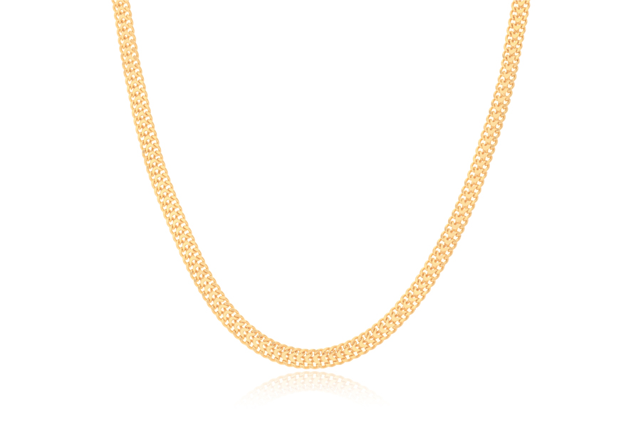 CORRENTE BANHADA EM OURO, ELO PORTUGUÊS 2,50mm, 40cm COMPRIMENTO, EXTENSOR 5cm COMPRIMENTO E PESO 3,40g