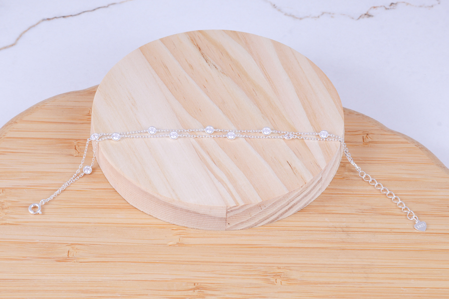 PULSEIRA EM PRATA, DUPLA, PONTOS DE LUZ CRAVAÇÃO INGLESA 3,60mm DIÂMETRO, ELO CADEADO, 15+3cm COMPRIMENTO