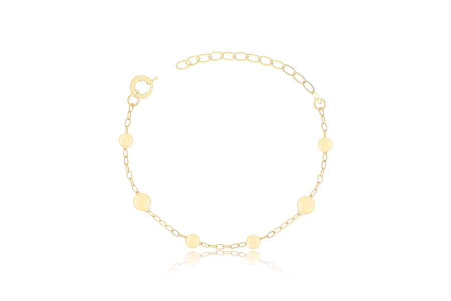 PULSEIRA BANHADA EM OURO, ELO OVAL 1,60mm LARGURA, 17cm COMPRIMENTO, EXTENSOR 5cm E ESFERAS 6mm E 8mm