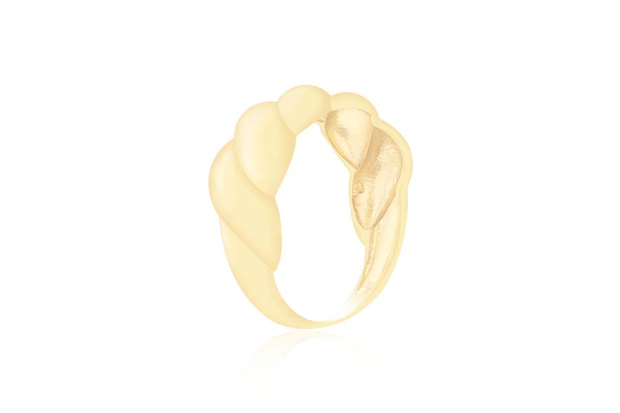 ANEL BANHADO EM OURO, FLOR TRABALHADA 22,40mm LARGURA
