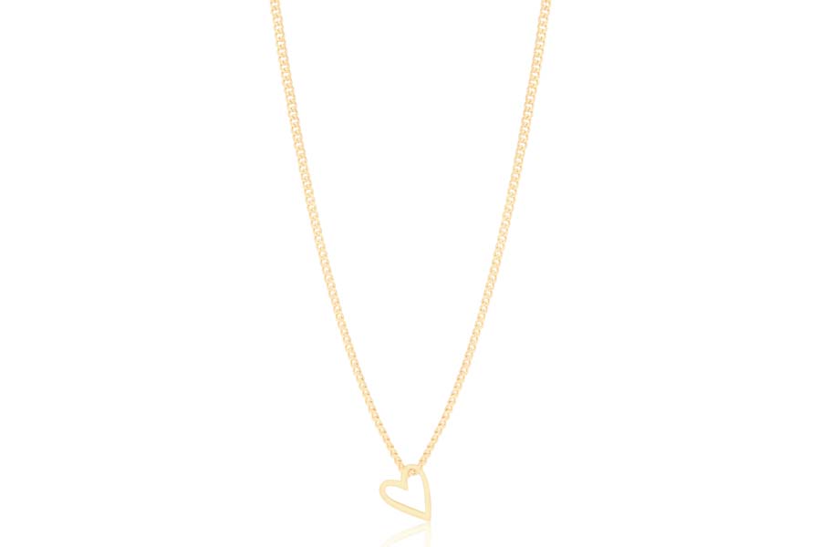 GARGANTILHA BANHADA EM OURO, PINGENTE MÃE, CORAÇÃO 11mm LARGURA, PÉROLAS BARROCAS 5mm LARGURA, 45cm COMPRIMENTO, EXTENSOR 5cm