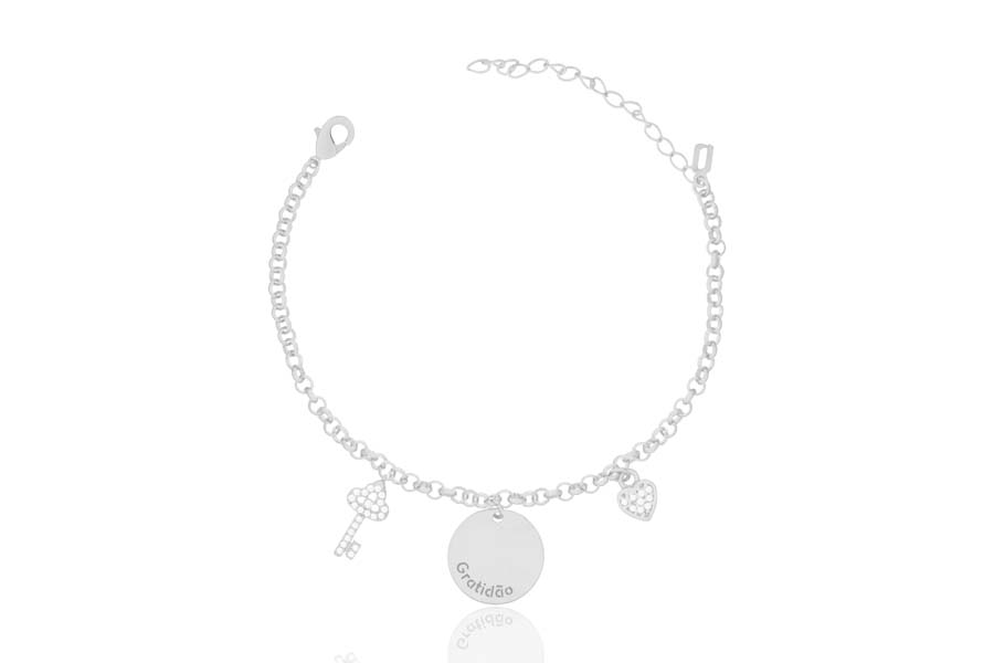 PULSEIRA BANHADA EM PRATA LEVE, CORRENTE ELO LACRAIA LAMINADA 3mm LARGURA, EXTENSOR 5cm COMPRIMENTO E PESO 2,70g, COM FECHO LAGOSTA, 17cm