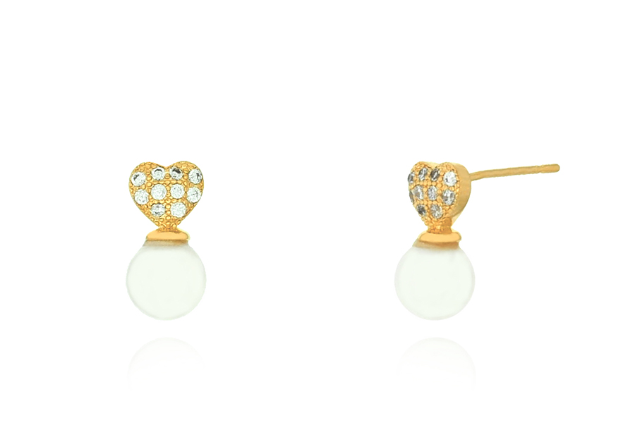 BRINCO BANHADO EM OURO, CORAÇÃO ZIRCÔNIA 6X6mm, PARA QUALQUER COR DE PEDRA