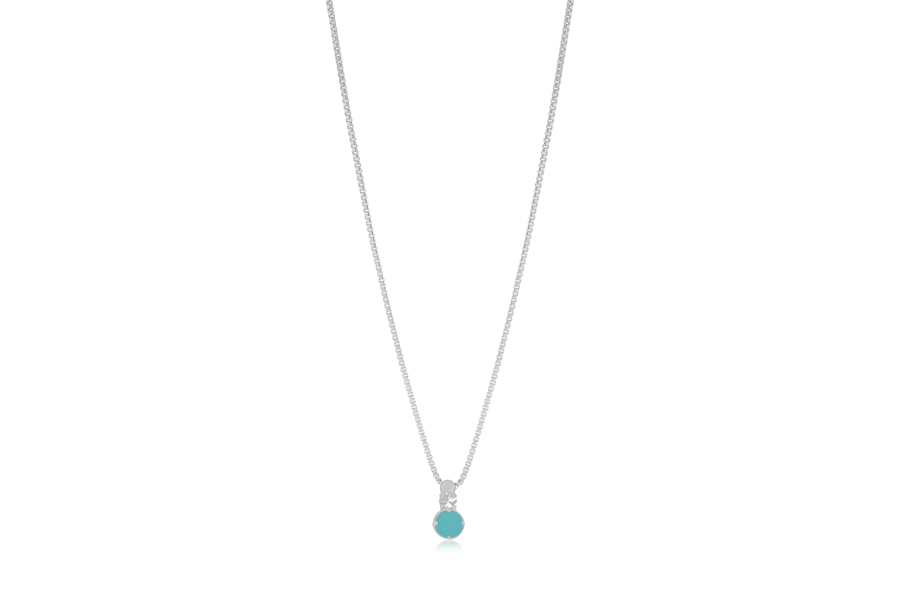 GARGANTILHA EM PRATA, ELO VENEZIANA 0,60mm, 40cm COMPRIMENTO, EXTENSOR 5cm, PINGENTE REDONDO 9mm DIÂMETRO, COM BANHO DE RÓDIO BRANCO, COLEÇÃO AURA