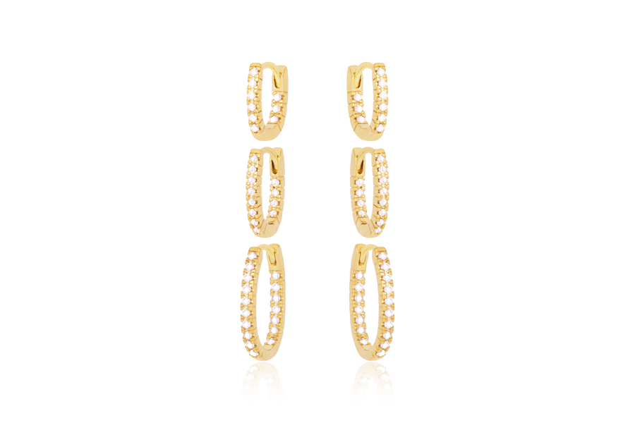 BRINCO BANHADO EM OURO, CORAÇÃO 11mm LARGURA COM 40 ZIRCÔNIAS