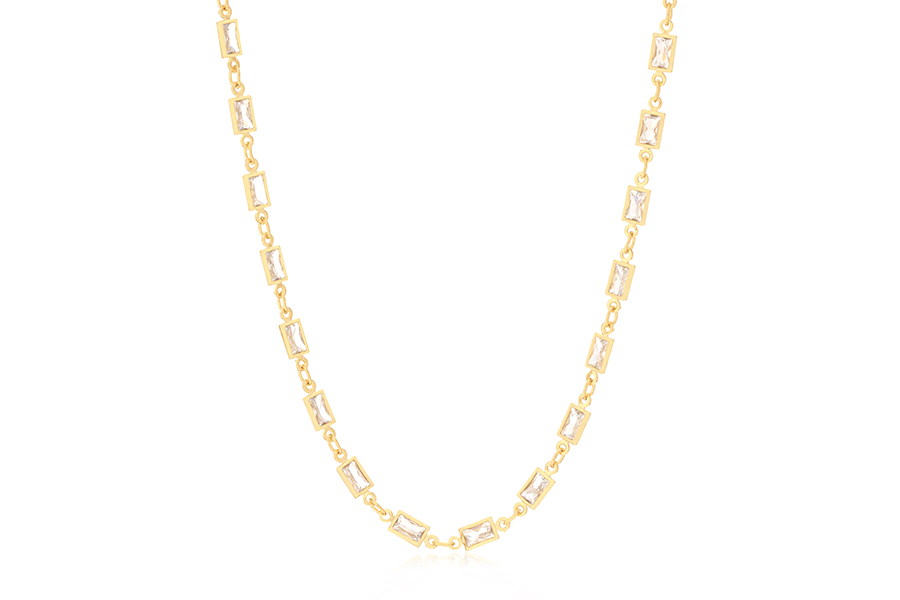 GARGANTILHA BANHADA EM OURO, ELO 2mm, 40cm COMPRIMENTO COM ZIRCÔNIAS QUADRADA 8 E 6mm COLORIDAS