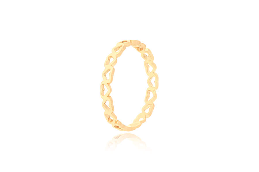 ANEL BANHADO EM OURO, FLOR TRABALHADA 22,40mm LARGURA