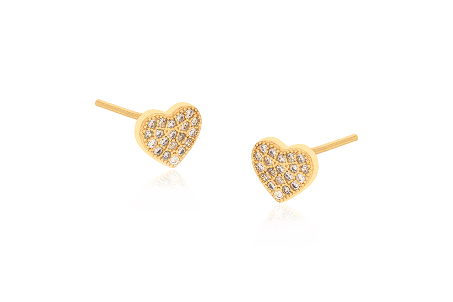 BRINCO BANHADO EM OURO, CORAÇÃO ZIRCÔNIA 6X6mm, PARA QUALQUER COR DE PEDRA