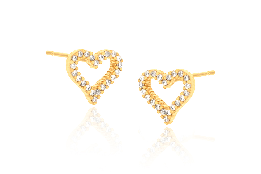 BRINCO BANHADO EM OURO, CORAÇÃO ZIRCÔNIA 6X6mm, PARA QUALQUER COR DE PEDRA