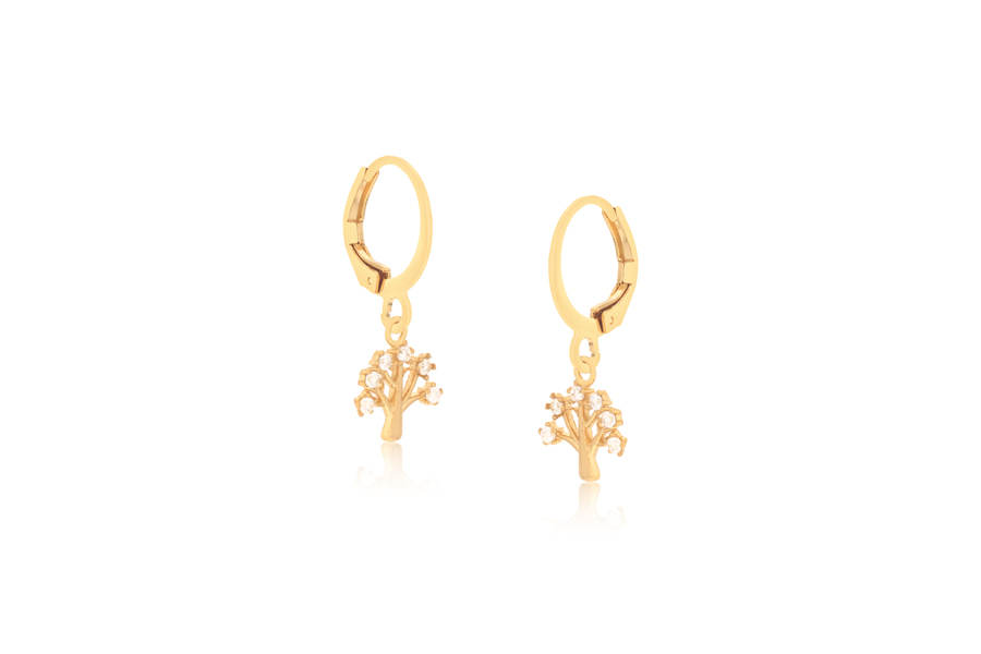 BRINCO BANHADO EM OURO, ÁRVORE DA VIDA 10,50mm DE ALTURA