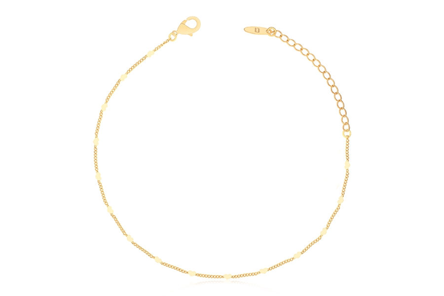 TORNOZELEIRA BANHADA EM OURO, ELO CORAÇÃO, 22cm COMPRIMENTO E EXTENSOR 5cm COMPRIMENTO